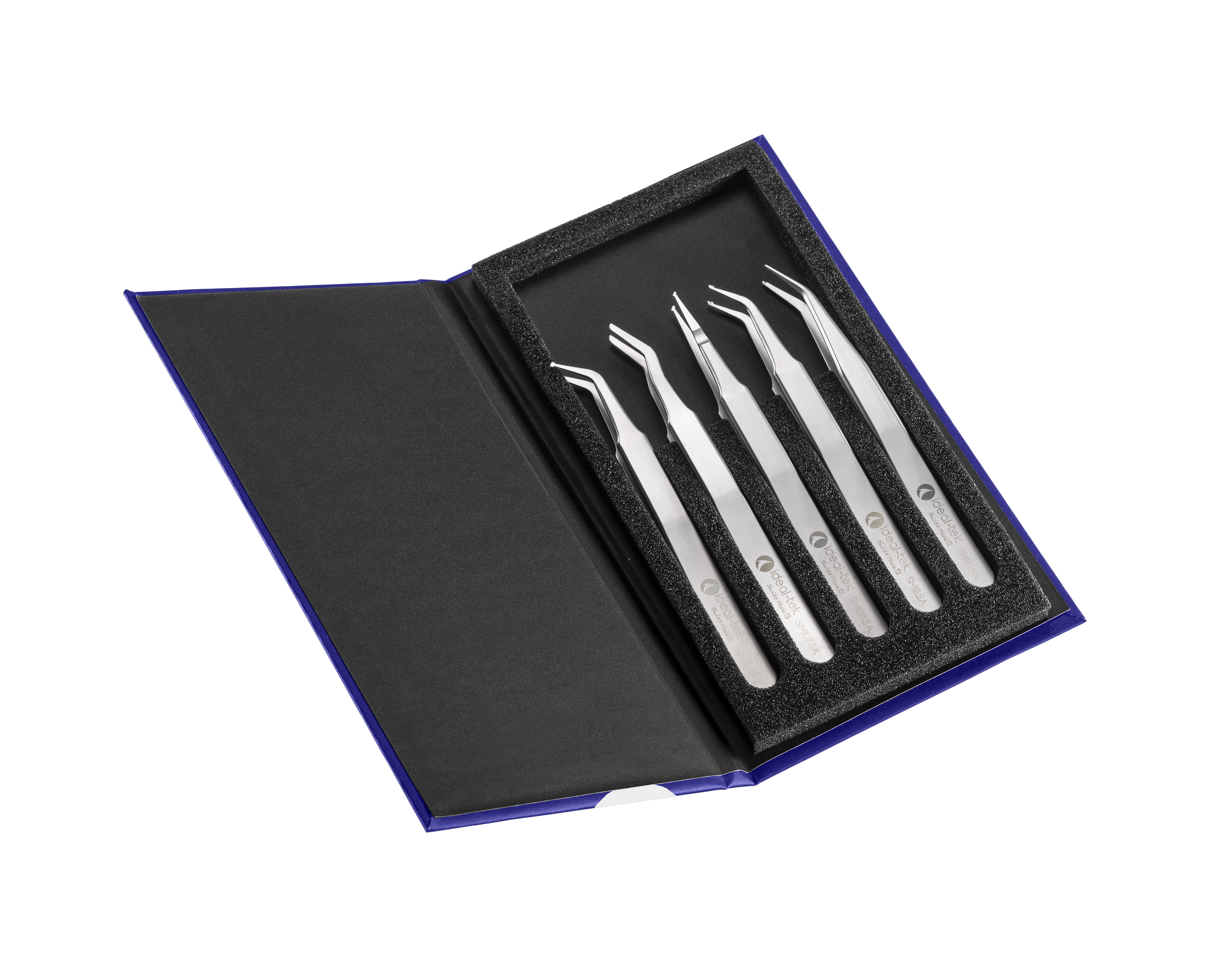 This is Stainless Steel Tweezer Set manufactured by ideal-tek. The manufacturer part number is KSMD.SA. The product is made from highly stable and reliable stainless steel. The product consists of 5 pieces.