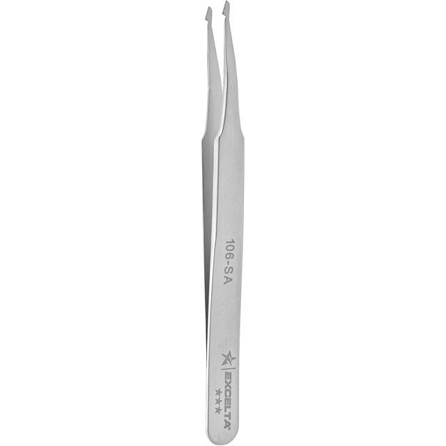 This is manufactured by Excelta Corporation. The manufacturer part number is 106-SA. It is assigned with possible HTSUS value of 8203.20.2000. The product is not applicable. The product has an integral pointed tip. The product is made from highly stable and reliable stainless steel. It is shipped in box package . Its typical moisture sensitivity level is not applicable. It has a long 6 weeks standard lead time. The splendid features of the product include anti-magnetic. The tip is designed with a angled shape. The product is designated with the ear99 code number.