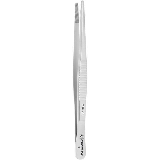 This is manufactured by Excelta Corporation. The manufacturer part number is 23B-S-SE. It is assigned with possible HTSUS value of 8203.20.2000. The product is not applicable. The product has an integral 4.50" (114.3mm) overall length. The product is made from highly stable and reliable stainless steel. It is shipped in box package . Its typical moisture sensitivity level is not applicable. It has a long 6 weeks standard lead time. The splendid features of the product include serrated. The tip is designed with a straight shape. The product is designated with the ear99 code number.