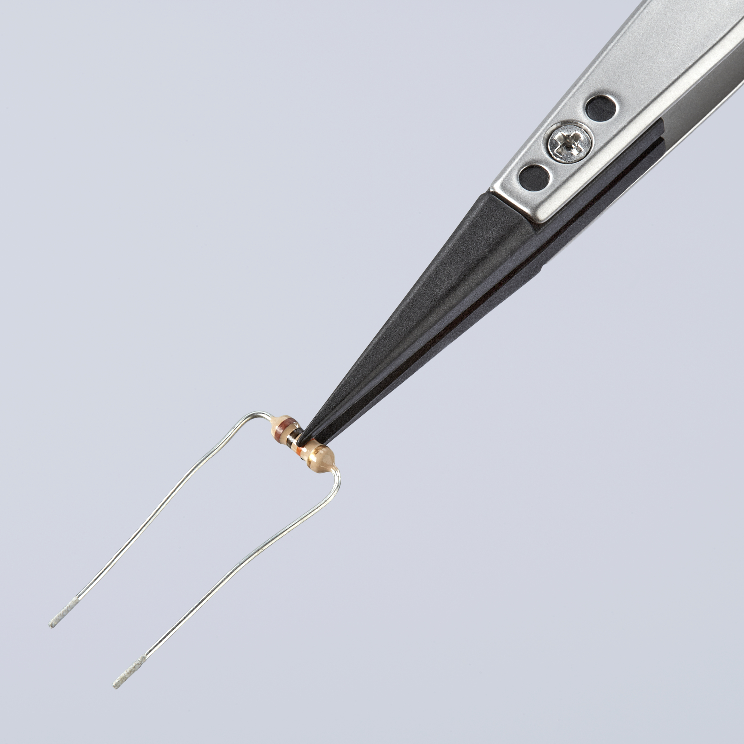 This is 130 mm Stainless Steel Straight Tweezer manufactured by Knipex. The manufacturer part number is 92 81 05. The tip is rounded in size. The product has a straight orientation. The product is made from highly stable and reliable stainless steel, carbon fibre reinforced plastic. It has an overall length of 130 mm. It has a model number 92 81 05. In addition, it is anti-acid yes . It has an anti-magnetic characteristic yes . ESD Safety - yes. It has a/an smooth type point . The product consists of 1 pieces.