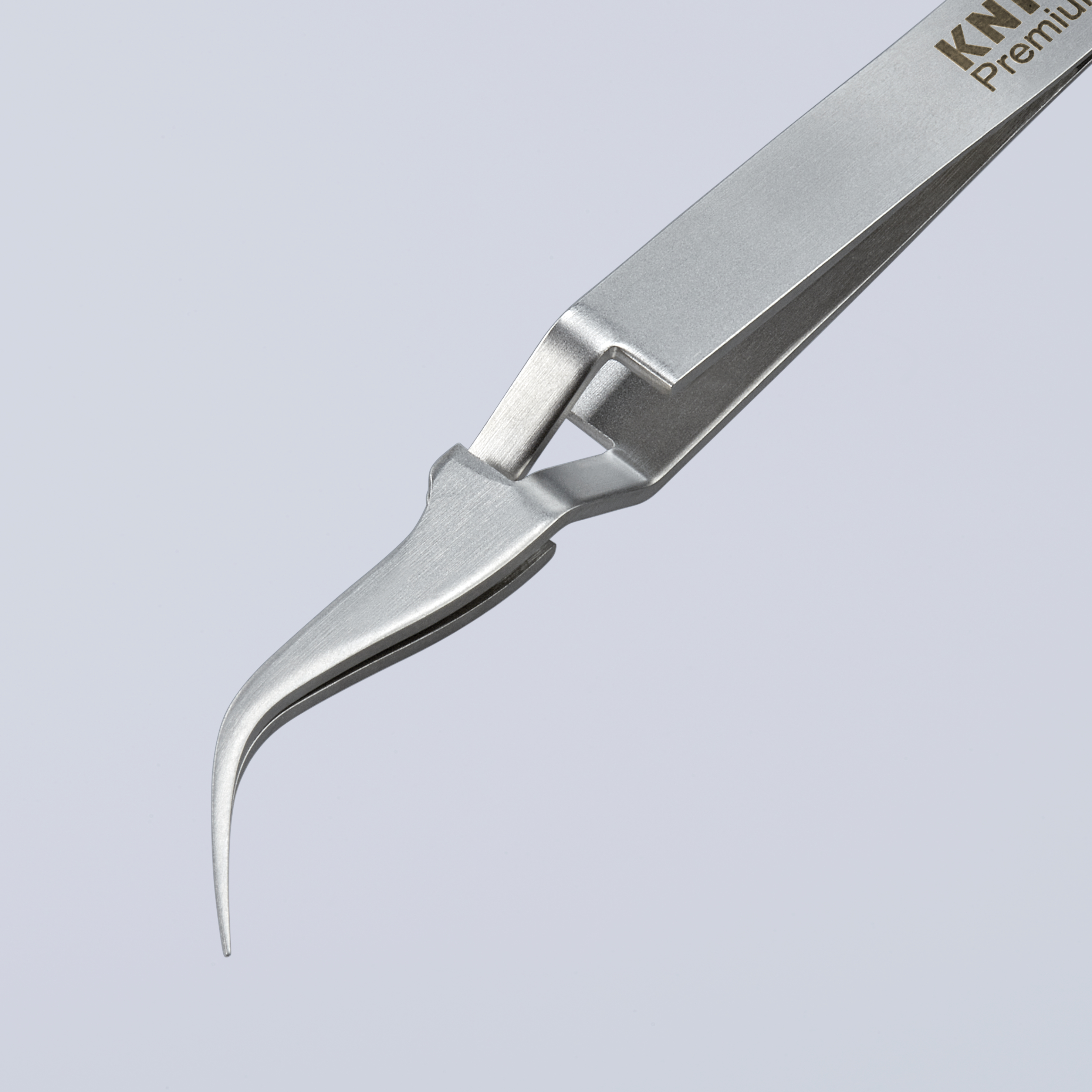 This is 115 mm Stainless Steel Angle Tweezer manufactured by Knipex. The manufacturer part number is 92 91 03. The tip is pointed in size. The product has a bent orientation. The product is made from highly stable and reliable stainless steel. It has an overall length of 115 mm. It has a model number 92 91 03. In addition, it is anti-acid yes . It has an anti-magnetic characteristic yes . ESD Safety - no. It has a/an smooth type point . The product consists of 1 pieces.