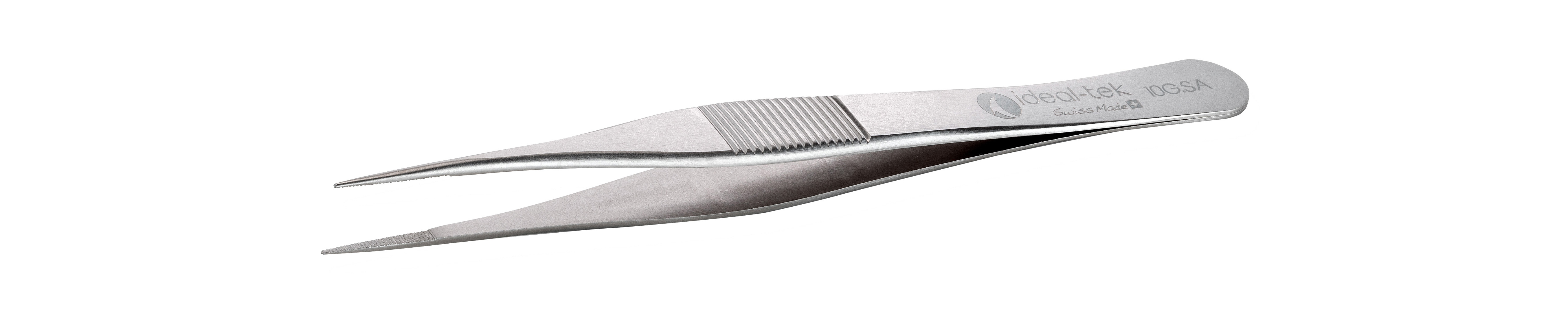 This is 110 mm Stainless Steel Straight Tweezers manufactured by ideal-tek. The manufacturer part number is 10G.SA.0. The tip is 0.45 x 0.40 mm in size. The product has a straight orientation. The product is made from highly stable and reliable stainless steel. It has an overall length of 110 mm. It has a model number 10g.sa.0. It has an anti-magnetic characteristic yes . ESD Safety - no. It has a/an straight type point .