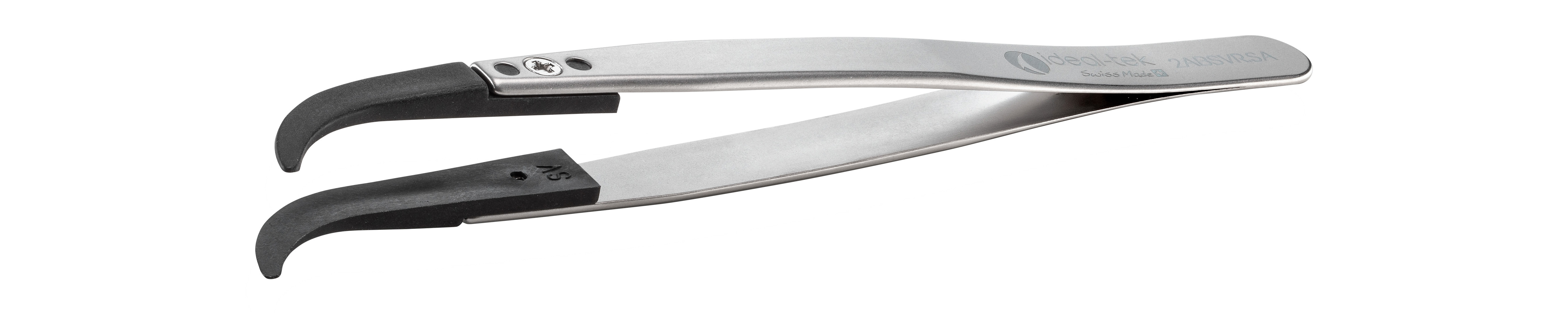 This is 130 mm Stainless Steel Curved ESD Tweezers manufactured by ideal-tek. The manufacturer part number is 2ABSVR.SA.1. The tip is 2.0 x 0.50 mm in size. The product has a curved orientation. The product is made from highly stable and reliable stainless steel. It has an overall length of 130 mm. It has a model number 2absvr.sa.1. It has an anti-magnetic characteristic yes . ESD Safety - yes. It has a/an curved type point .
