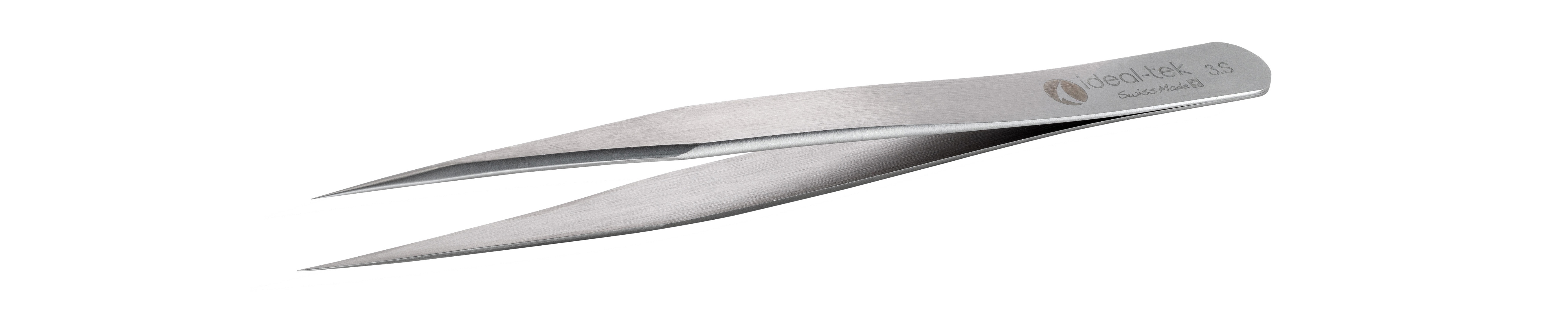 This is 120 mm Stainless Steel Straight Tweezers manufactured by ideal-tek. The manufacturer part number is 3.S.0. The tip is 0.18 x 0.12 mm in size. The product has a straight orientation. The product is made from highly stable and reliable stainless steel. It has an overall length of 120 mm. It has a model number 3.s.0. It has an anti-magnetic characteristic no . ESD Safety - no. It has a/an straight type point .
