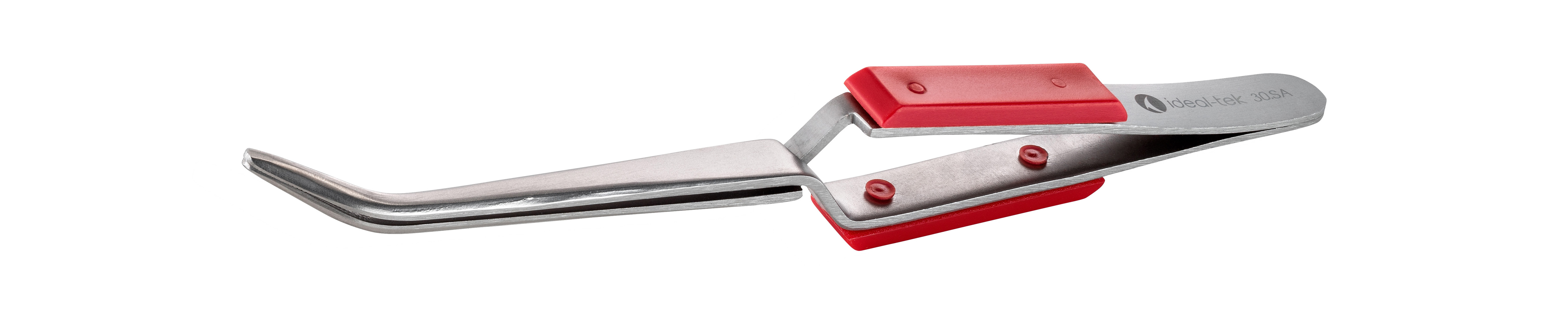 This is 160 mm Stainless Steel Bent Tweezers manufactured by ideal-tek. The manufacturer part number is 30.SA.5. The tip is 2.50 x 1.50 mm in size. The product has a bent orientation. The product is made from highly stable and reliable stainless steel. It has an overall length of 160 mm. It has a model number 30.sa.5. It has an anti-magnetic characteristic yes . ESD Safety - no. It has a/an bent type point .