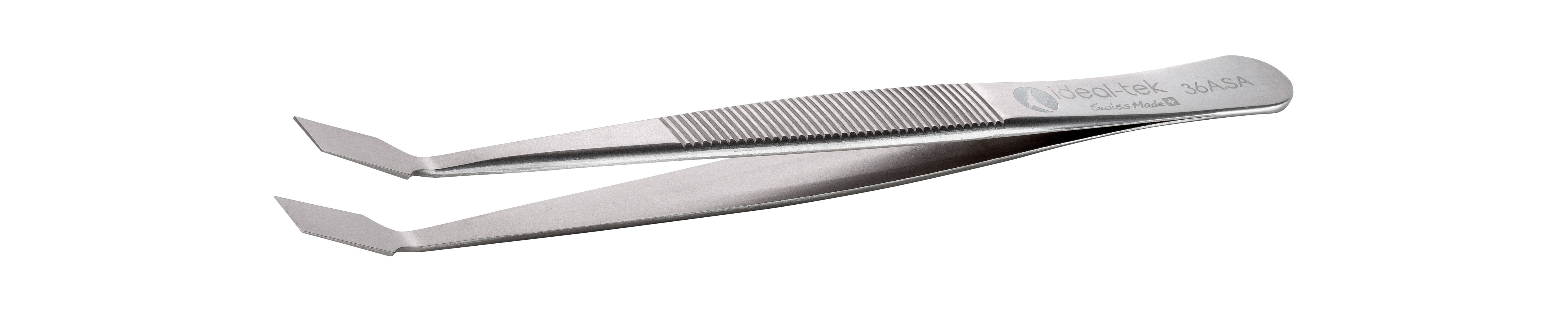 This is 120 mm Stainless Steel Tweezers manufactured by ideal-tek. The manufacturer part number is 36A.SA.1. The tip is 6.30 x 0.17 mm in size. The product has a bent orientation. The product is made from highly stable and reliable stainless steel. It has an overall length of 120 mm. It has a model number 36a.sa.1. It has an anti-magnetic characteristic yes . ESD Safety - no.