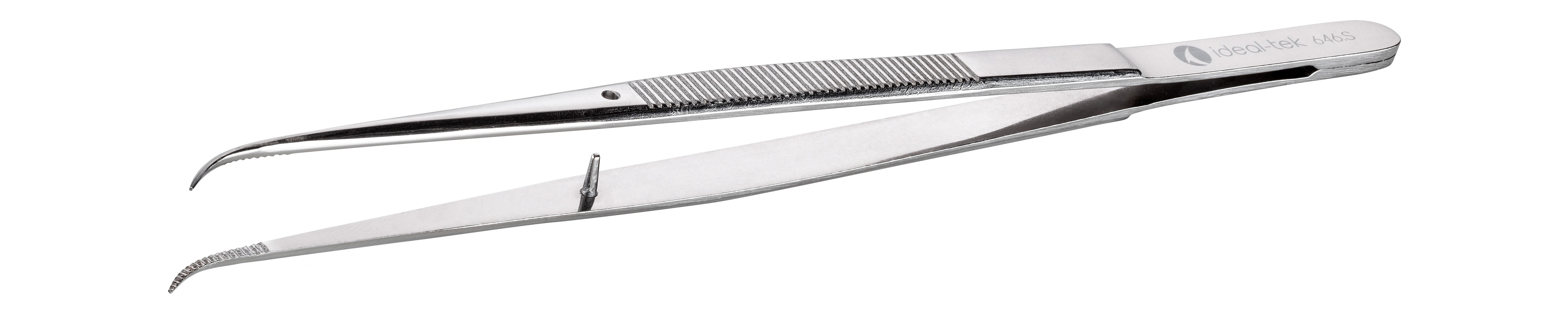 This is 155 mm Stainless Steel Bent Tweezers manufactured by ideal-tek. The manufacturer part number is 646.S.6. The tip is 0.80 x 0.80 mm in size. The product has a bent orientation. The product is made from highly stable and reliable stainless steel. It has an overall length of 155 mm. It has a model number 646.s.6. It has an anti-magnetic characteristic no . ESD Safety - no. It has a/an bent type point .