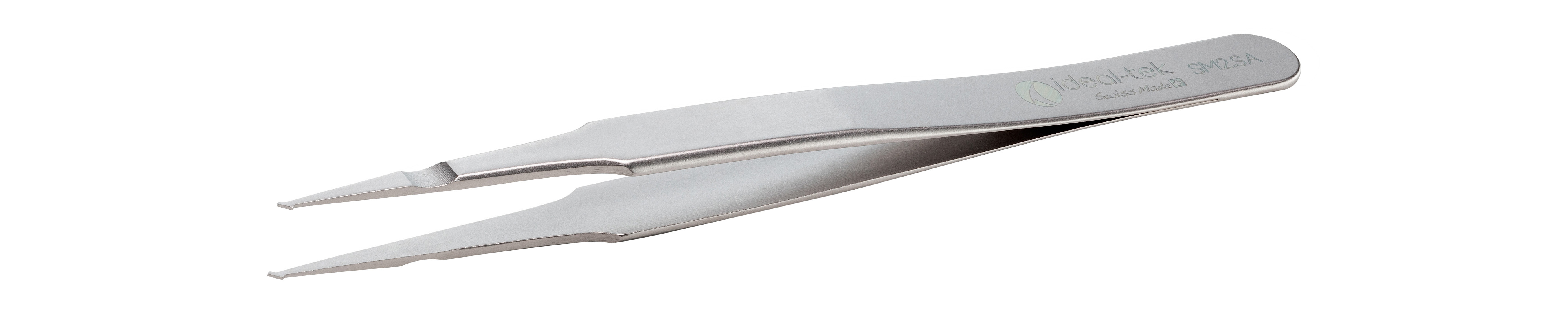 This is 120 mm Stainless Steel Straight Tweezers manufactured by ideal-tek. The manufacturer part number is SM2.SA.1. The tip is 1.6 x 0.30 mm in size. The product has a straight orientation. The product is made from highly stable and reliable stainless steel. It has an overall length of 120 mm. It has a model number sm2.sa.1. It has an anti-magnetic characteristic yes . ESD Safety - no. It has a/an straight type point .