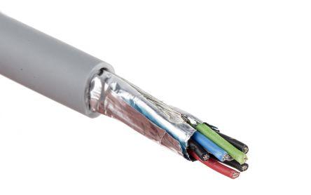 This is 4 Pair Screened Multipair Industrial Cable 24 AWG 100m manufactured by RS Pro. The manufacturer part number is 811-7412. Features 24 awg - American Wire Gauge. The product complies with all safety standards, such as ce, csa certified, ul. Moreover, the product has a nominal 300 v voltage rating. The item is shielded with a foil. It is a typical twisted pair cable. The core strands are 7/0.6 mm. The sheath has an adorable grey colour. Its accurate length is 100m. Screen Options - screened. It includes 4 pair(s) . Whereas the outer sheath is manufactured from lszh material. The typical characteristic impedance includes 75 ω. Its outer diameter is 6.7mm.
