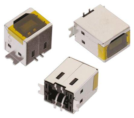 This is 1 Port Right Angle Surface Mount Female Version 2.0 Type B USB Connector 30 V ac 1.5A manufactured by Wurth Elektronik. The manufacturer part number is 629104142721. The product has a current rating of 1.5a. It is of 2.0 type USB version . The product is available in surface mount configuration. Moreover, the product has a nominal 30 v ac voltage rating. In addition, female is the available "Gender" of the product. It has right angle body orientation. It allows solder termination method. This product features 1 number of ports. Whereas, the minimum operating temperature of the product is -40°c. The product wr-com, is a highly preferred choice for users. The product is made from sturdy copper alloy materials. It has a maximum operating temperature of +105°c. It carries [Serial Number] serial number.