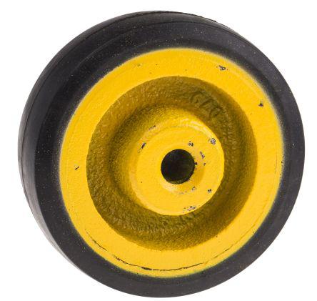 This is Black Yellow Rubber Castor Wheels 100kg manufactured by RS Pro. The manufacturer part number is 100AS04. The tyre of the product is made up of rubber material . Its bore is 45mm in length . It has a decent black, yellow colour. It can holds up to 100kg load capacity. Moreover, it has solid type tyre . Its hub is made using cast iron material . The product has a plain bore type hub bearing . It has a wheel about 35mm in width . Its wheel diameter is about 100mm . Its hub diameter is 45mm . It contains a standard 12mm bore diameter . The splendid features of the product include anti-static.