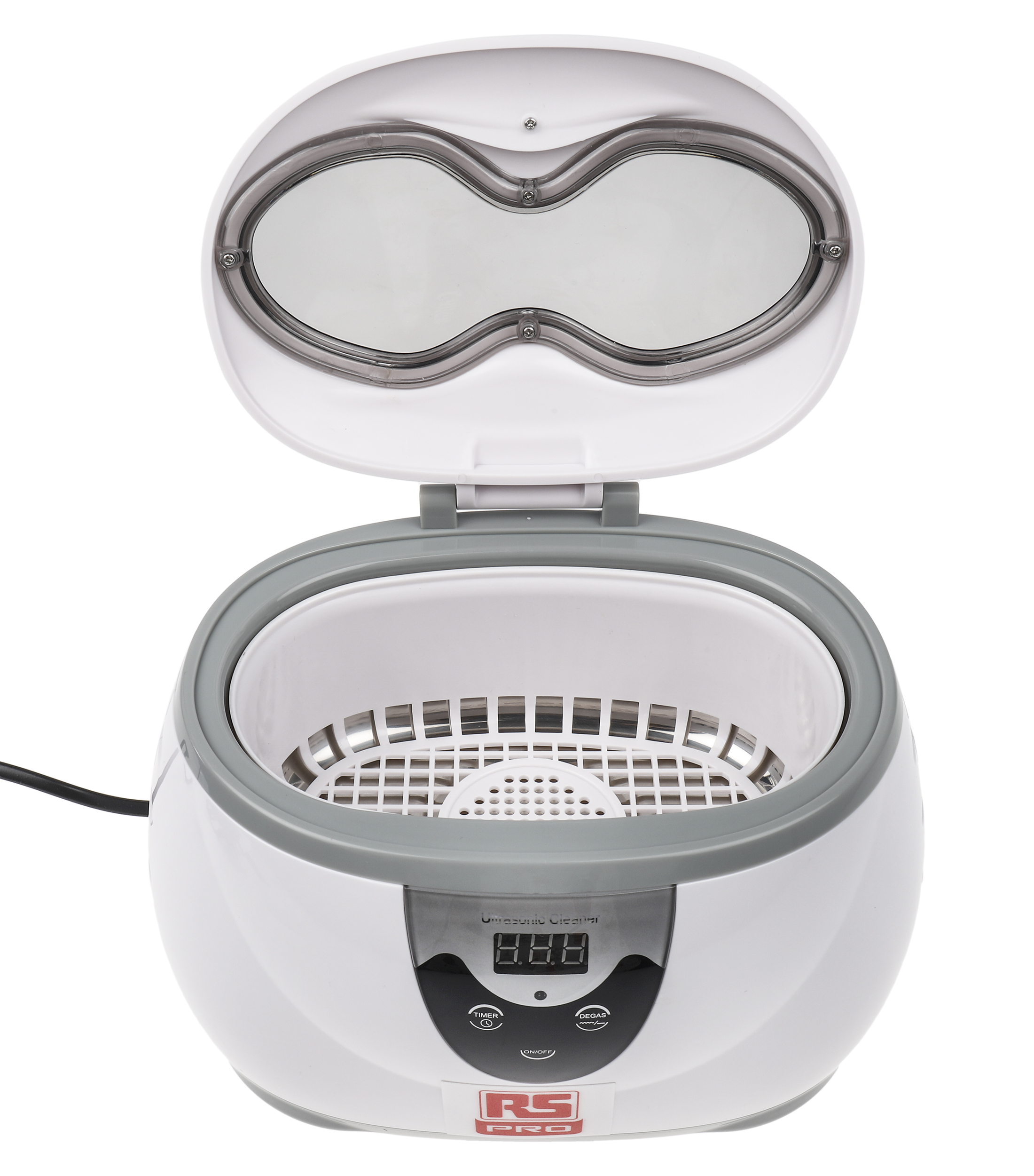 This is Ultrasonic Cleaner 35W 600mL with Lid manufactured by RS Pro. The manufacturer part number is 136-8566. The module has the capacity of 600ml. The plug is a highly reliable type c - european plug with long service life. It has an ultrasonic power rating range of 35w . Furthermore, the product is 182mm wide. Its accurate length is 290mm. In addition, the height is 225mm.