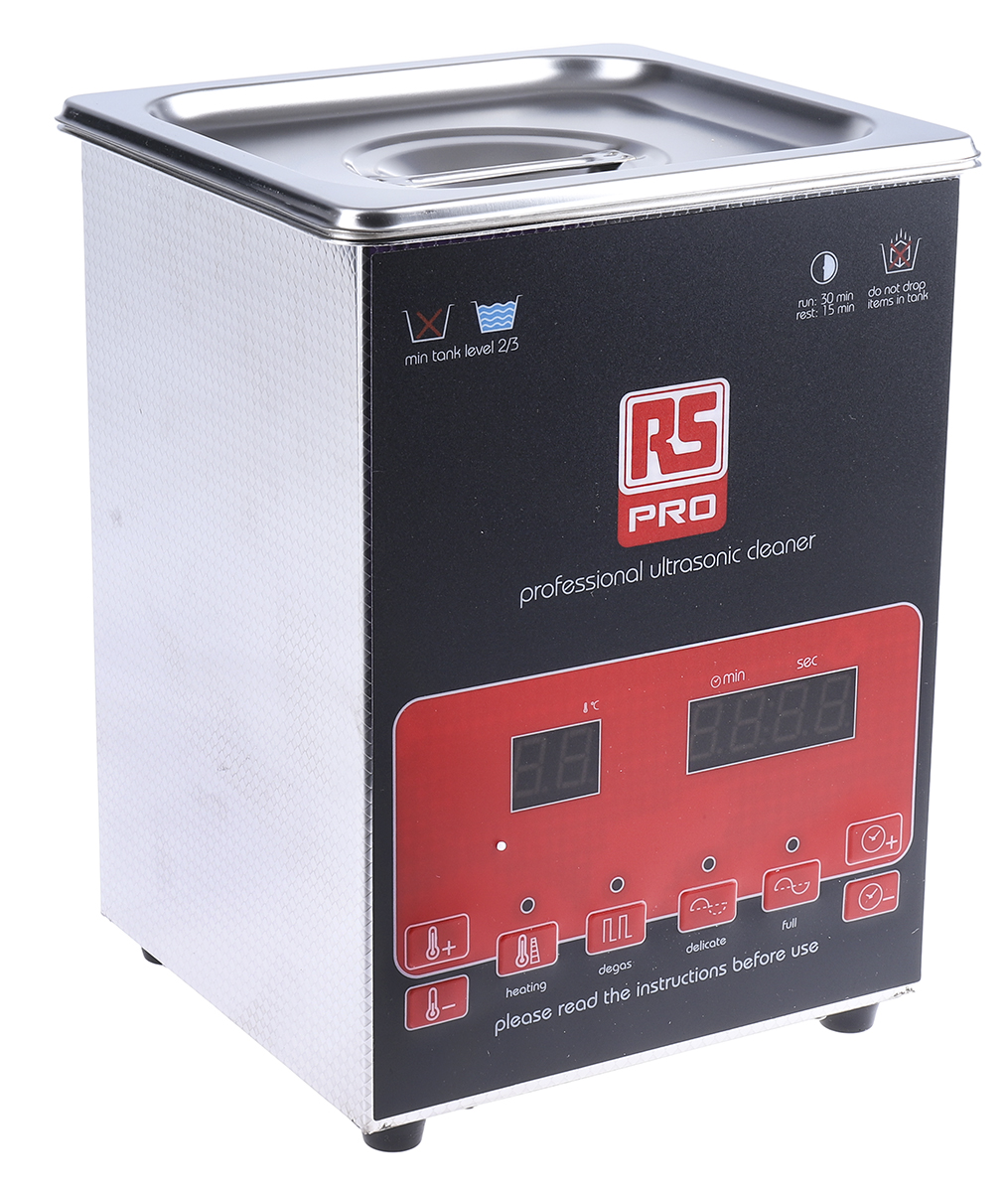 The 2L tank comes with a fitted lid to prevent splashing and reduce noise during operation. Its compact footprint enables it to fit easily on workbenches, in labs, or at electronics repair stations, while keeping cleaning efficient and organised.