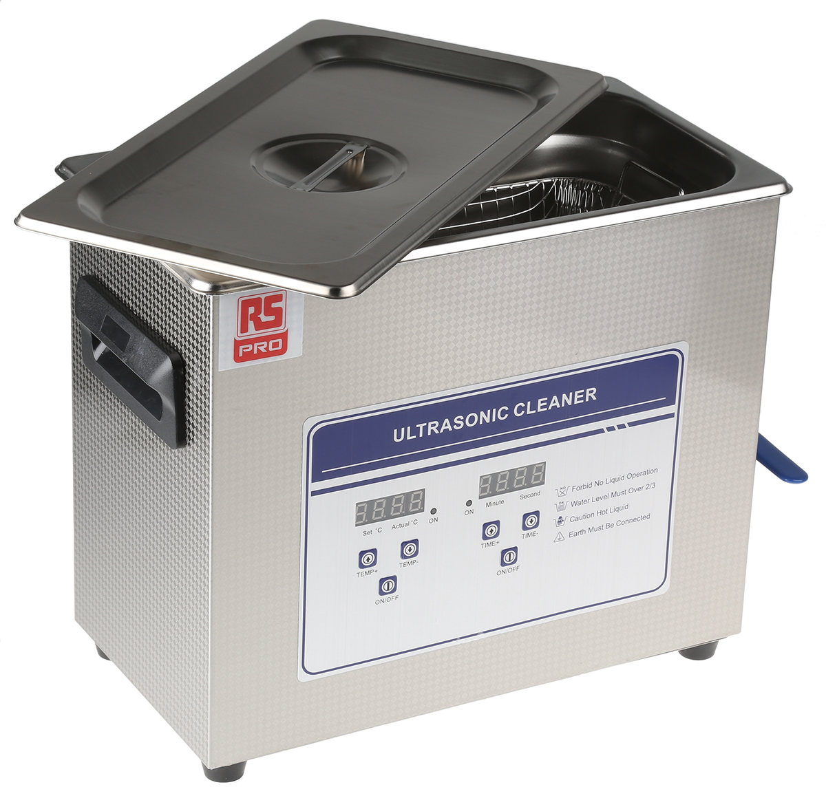 This is Ultrasonic Cleaner 200W 6.5L with Lid manufactured by RS Pro. The manufacturer part number is 136-8567. The module has the capacity of 6.5l. The product is made from highly stable and reliable stainless steel. The plug is a highly reliable iec power plug with long service life. In addition, the height is 280mm. Furthermore, the product is 180mm wide. Its accurate length is 325mm. It has 200w heater power rating . It has an ultrasonic power rating range of 180w .