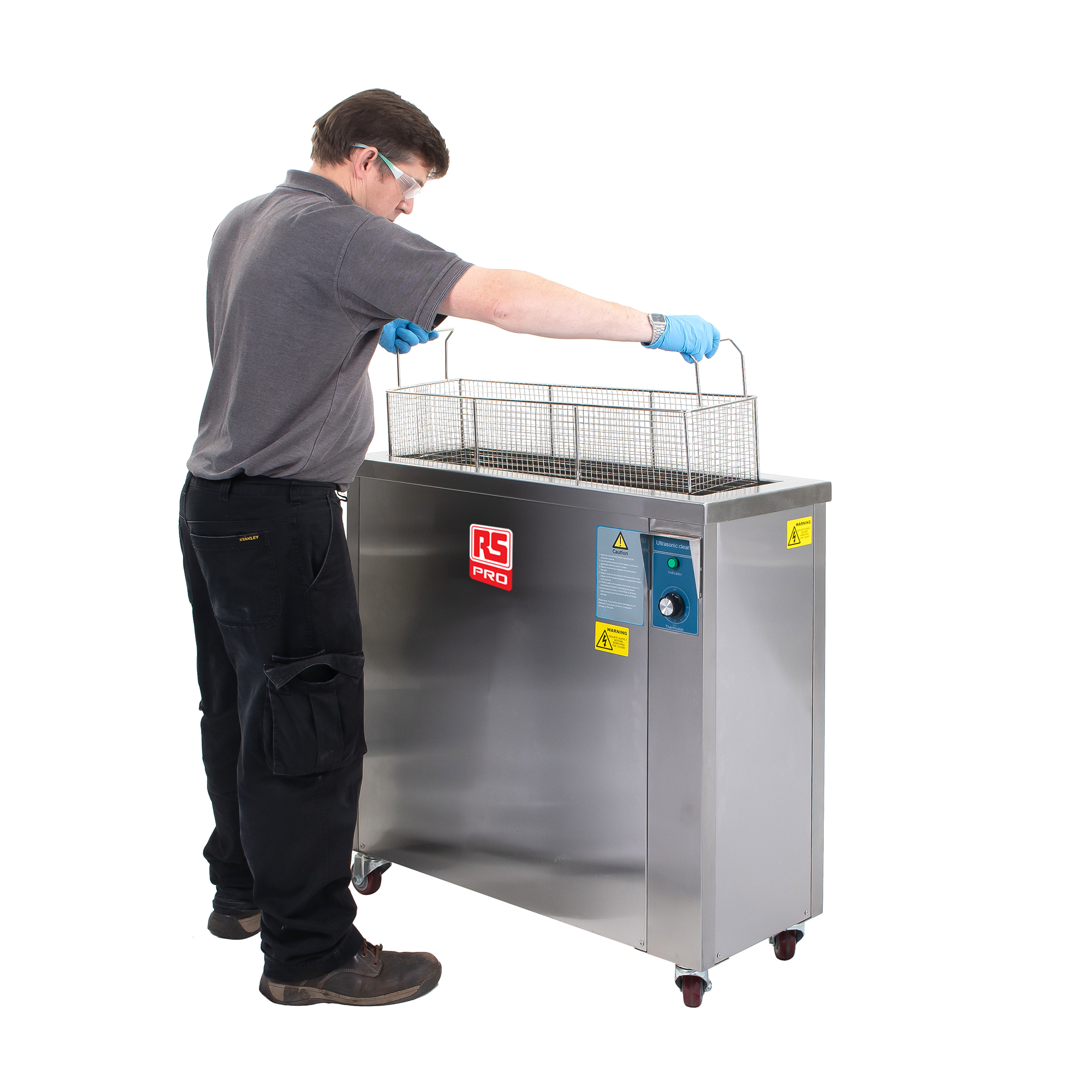 This is 99L Ultrasonic Cleaning Tank 3000W 99L with Lid manufactured by RS PRO. The manufacturer part number is 213-5195. The module has the capacity of 99l. The product is made from highly stable and reliable stainless steel. While it has 99l of model number. The plug is a highly reliable uk with long service life. In addition, the height is 620mm. Furthermore, the product is 250mm wide. Its accurate length is 800mm. It has 3000w heater power rating . It has an ultrasonic power rating range of 1440w .