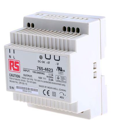This is 30W Switch Mode DIN Rail Panel Mount Power Supply 15V dc/ 2A manufactured by RS Pro. The manufacturer part number is 765-4623. The product has +60°c maximum temperature. It has a/an dc output voltage . The given dimensions of the product include 93 x 78 x 56mm. While its minimum temperature is -20°c. It has ac input voltage. Furthermore, the product is 78mm wide. The MTBF values include 441.5kh. Its output voltage (maximum) includes 16.5v dc. It provides robust protection features, such as over voltage protection, overload protection, short circuit protection. The product is available in din rail configuration. It comes in switch mode configuration. Additionally, its holdup time is about 21 ms @ 115 v ac, 100 ms @ 230 v ac . Load Regulation - ±1%. The product complies with all safety standards, such as en 50178, rohs compliant, tuv en 60950-1, ul 508. While its maximum input current includes 0.48 a @ 230 v ac, 0.88 a @ 115 v ac. It has 47 → 63hz input frequency range . It is a highly efficient product with an 82% of high efficiency. Its input voltage is 85 → 264v ac. Additionally, the product is supplied with 1 outputs. It has 13.5 → 16.5v of output voltage adjustment range. Has a line regulation of ±1%. Carries 120mv pk-pk ripple and noise. The product comes in 56mm depth. The product features 13.5v dc minimum output voltage. The product also provides special features, such as cooling by free air convection, installed on din rail ts-35/7.5 or 15, isolation class ii, led indicator for power on, universal ac input/full range, 3-years warranty, 100% full load burn-in test. In addition, it has ac-dc type power signal conversion . The typical product's weight is 0.27kg. It carries 2 a output current. Applications Information involves commercial & residential household appliances & building automation controls. Features a 15 v dc output voltage. Feature 30w of power rating. 264v ac is the maximum voltage of the bespoke product. The product has 85v ac of minimum input voltage.