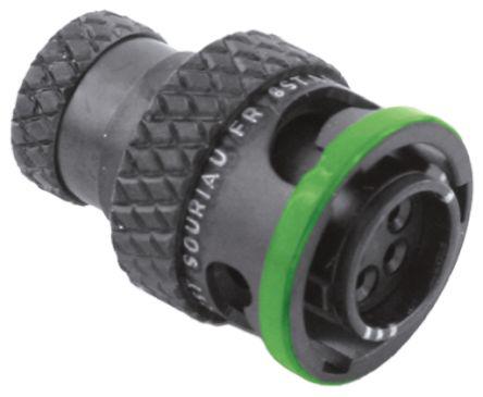 This is 8STA Series 5 Pole Cable Mount Connector Plug with Female Contacts IP67 manufactured by Souriau. The manufacturer part number is 8STA60205SD. Priced to Clear Options - yes. The product has a current rating of 3a. It is a type of bayonet mating. The product is available in cable mount configuration. It is IP rated with ip67. The product 8sta, is a highly preferred choice for users. It has straight body orientation. It allows crimp, pc tail termination method. This female contact is widely suited for specific applications. The product also features robust aluminium housing material. It comprises a plug. The connector has standard size. The shell has 02 size. The product contains 5 contacts.