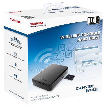 This is Canvio AeroCast Black 1 TB Portable Hard Drive manufactured by Toshiba. The manufacturer part number is HDTU110EKWC1. The module has the capacity of 1 tb. The given dimensions of the product include 124 x 86 x 20mm. The typical product's weight is 260g. Moreover, it has a/an usb 3.0 cable interface . It has a decent black colour. It includes cache about 12mb . In addition, the height is 20mm. Moreover, the product gets power from ac adapter. Furthermore, the product is 86mm wide. Its accurate length is 124mm. It has a/an 2.5in drive form factor . It has a model canvio aerocast. It provides maximum rpm up to 7200.
