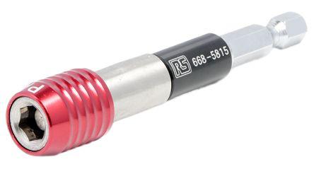 This is Hexagon 1/4 in Socket Driver 80 mm manufactured by RS Pro. The manufacturer part number is AOT0054. A quality product with a nice red; black anodized finish. The product features a hexagon drive. The product is made from highly stable and reliable chrome vanadium shaft; aluminium tube. It has an overall length of 80 mm. The product has a drive size of 1/4 in.