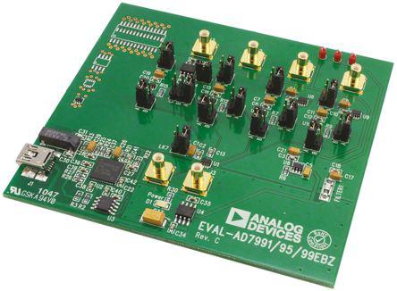 This is 12-bit ADC Evaluation Board for AD7991 manufactured by Analog Devices. The manufacturer part number is EVAL-AD7991EBZ. It is designed with standard adc type converter . Featured Device ad7991. Features 12-bit resolution. The kit is classified as evaluation board.