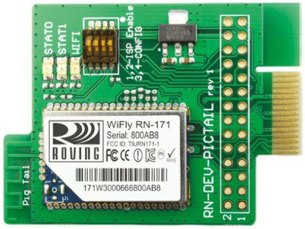 This is WiFi PICtail Daughter BoardPCB antenna manufactured by Microchip. The manufacturer part number is RN-171-PICtail. This product use pictail, wi-fi technology. It is classified as a/an development kit .