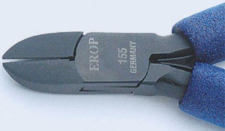 This is Side Type Wire Cutter 110mm overall length 1mm cutting capacity manufactured by Erem by Weller. The manufacturer part number is EROP155. Its typical cutting capacity is 1mm . It has an electrostatic discharge safe feature yes . It has a/an semi flush type cut . It is offered to cut copper wire, diode wire materials . It has an overall length of 110mm. It comes in side configuration.