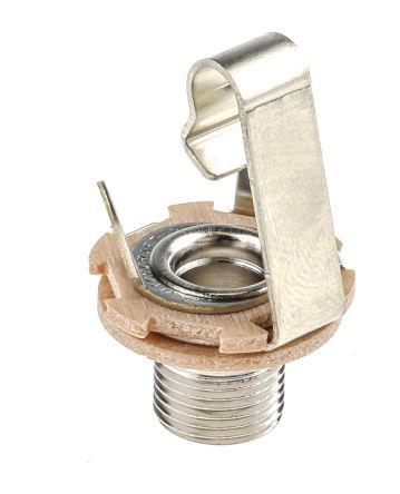This is 6.35 mm Panel Mount Jack Socket 2 manufactured by Switchcraft. The manufacturer part number is 11-RS. The product is available in panel mount configuration. In addition, female is the available "Gender" of the product. It has straight body orientation. It allows solder termination method. The high-quality nickel is used as contact plating material. It has about 2 number of poles/ways . It comes in mono configuration. The product is available in 6.35 mm size.
