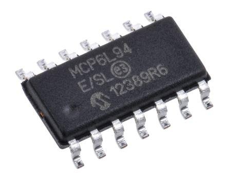 This is Quad Op Amp 10MHz Rail-Rail 2.4 → 6 V 14-Pin SOIC manufactured by Microchip. The manufacturer part number is MCP6L94T-E/SL. Featuring a 9.4nv/√hz of typical input voltage noise density. Features 10mhz typical gain bandwidth. The given dimensions of the product include 8.65 x 3.9 x 1.25mm. The product is available in surface mount configuration. Furthermore, it has a typical 7v/µs of slew rate. It is a type of single power supply. It comprises 4 channels per chip. It has a typical single supply voltage of 2.4 → 6 v. Furthermore, it has arail to rail output. In addition, the height is 1.25mm. Furthermore, the product is 3.9mm wide. Its accurate length is 8.65mm. The package is a sort of soic. Whereas, the minimum operating temperature of the product is -40 °c. Furthermore, its typical voltage gain includes 105 db. It has a maximum operating temperature of +125 °c. It contains 14 pins.
