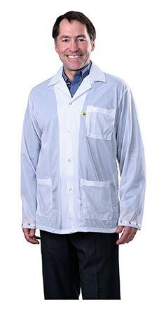 This is White M Mens Anti-Static Conductive Dissipative Reusable ESD Lab Coat manufactured by Desco. The manufacturer part number is 73822. It is a snaps closure with unique specifications. It is tailored for reusable type use . In addition, men is the available "Gender" of the product. It has a decent white colour. It has 3 pockets . Its material offers a/an anti-static, conductive, dissipative properties . It Includes Design Features like collar, cuff . The Number of Launderings Included in the product 100 . It comes in lab coat configuration. The product is available in m size.