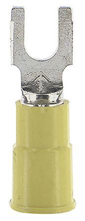 This is MV Series Insulated Crimp Spade Connector 12AWG to 10AWG #8 Stud Size Vinyl Yellow manufactured by 3M. The manufacturer part number is MV10-8FBX. While the minimum wire size AWG includes 12awg. The product mv, is a highly preferred choice for users. It has a decent yellow colour. It is unshrouded . It is 1.02mm thick. It has a standard #8 size stud . Furthermore, the product is 8.13mm wide. It has a robust vinyl insulation material. The high-quality tin is used as contact plating material. It has an overall length of 26.16mm. Insulation Option: insulated. Its maximum wires size includes 10awg. The product is made from sturdy etp copper materials.