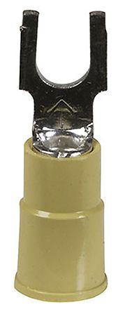 This is MV Series Insulated Crimp Spade Connector 12AWG to 10AWG #10 Stud Size Vinyl Yellow manufactured by 3M. The manufacturer part number is MV10-10FBX. While the minimum wire size AWG includes 12awg. The product mv, is a highly preferred choice for users. It has a decent yellow colour. It is unshrouded . It is 1.02mm thick. It has a standard #10 size stud . Furthermore, the product is 8.13mm wide. It has a robust vinyl insulation material. The high-quality tin is used as contact plating material. It has an overall length of 26.16mm. Insulation Option: insulated. Its maximum wires size includes 10awg. The product is made from sturdy etp copper materials.