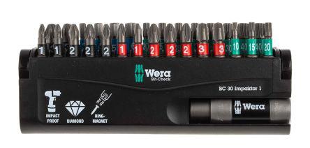 This is 31 pieces Impact Bit Driver Bit Set 1/4 in manufactured by Wera. The manufacturer part number is 5057690001. The product consists of 31 pieces. It has a hexagon head and is ideal choice for a variety of demanding applications. It comes in impact bit set configuration. The product is available in 1/4 in size.