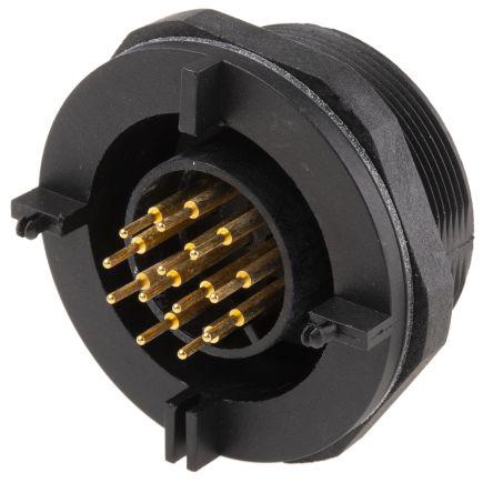 This is Buccaneer Series 12 Pole Panel Mount Connector with Female Contacts manufactured by Bulgin. The manufacturer part number is PX0707/12S. The product has a current rating of 5a. It is a type of threaded mating. The product is available in panel mount configuration. It is IP rated with ip68. The product buccaneer, is a highly preferred choice for users. It has straight body orientation. Moreover, the product has a nominal 50 v ac/dc voltage rating. This female contact is widely suited for specific applications. It allows pcb termination method. The product also features robust glass filled polyamide housing material. It comprises a socket. The connector has standard size. The shell has 35mm size. The product contains 12 contacts.