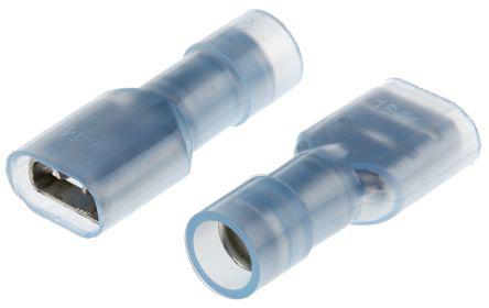 This is FDFNYD2 Series Blue Insulated Crimp Receptacle 6.35 x 0.8mm 1.5mm² to 2.5mm² 16AWG to 14AWG Copper Plated manufactured by RS Pro. The manufacturer part number is FDFNYD2-250. The wire has a maximum size of 2.5mm². In addition, female is the available "Gender" of the product. It has a decent blue colour. While the minimum wire size AWG includes 16awg. quick disconnect terminal Connector type offer robust functionality. Its accurate length is 21.5mm. Its tab size is about 6.35 x 0.8mm . It has a robust nylon insulation material. The high-quality copper is used as contact plating material. The product fdfnyd2, is a highly preferred choice for users. Insulation Option: insulated. Its maximum wires size includes 14awg. On the other hand, the wire has 1.5mm² of minimum size. The product is made from sturdy brass materials.