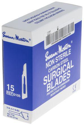 This is No.15 Carbon Steel Scalpel Blade manufactured by RS Pro. The manufacturer part number is 0105. The product is made from highly stable and reliable carbon steel. The blade has a 15 size.
