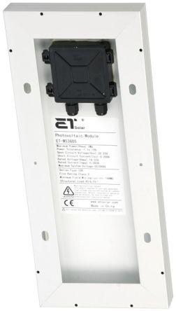This is 5W Monocrystalline Photovoltaic Solar Panel manufactured by ETSolar. The manufacturer part number is ET-M53605. The product has +44.4°c maximum temperature. The given dimensions of the product include 401 x 176 x 35mm. Its accurate length is 401mm. It is comprised of 36 cells. Furthermore, the product is 176mm wide. The product comes in 35mm depth. With 5w peak power . It exhibits a 21.96v open circuit voltage . Feature 5w of power rating. It comes in monocrystalline configuration.