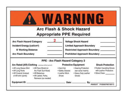 This is General Danger Sign with English Text Vinyl Adhesive 177.8 x 127mm 5 Hazard Warning manufactured by Panduit. The manufacturer part number is PVS0507W2106Y-2. Its text message shows arc flash & shock hazard appropriate ppe required . It has a decent black/white, orange colour. The product is made from highly stable and reliable vinyl adhesive. In addition, the height is 127 mm. Furthermore, the product is 177.8mm wide. It contains 5 item per package . However, its text language is english . In addition, it displays general danger sign description .