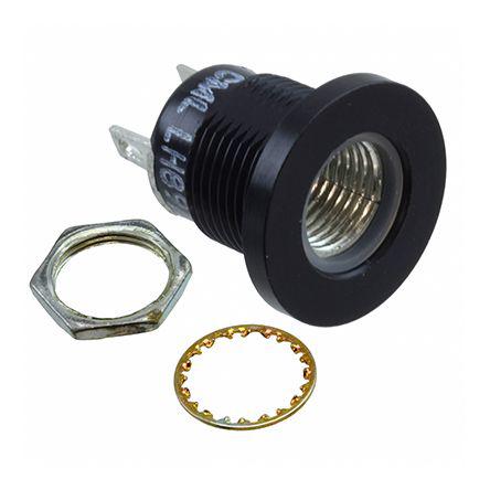 This is 2 W 2 pin Black Anodized Aluminium Midget Flange Base Incandescent Lampholder T-3 1/4 Panel Mount Mount 15/32-32 manufactured by VCC. The manufacturer part number is 5139-038. Its lamp is t-3 1/4 in size . Moreover, the product has a nominal up to 30 v voltage rating. This product carries 2 w. The product is made from highly stable and reliable black anodized aluminium. It has a typical thread size of 15/32-32. Furthermore, the product is 16.5 mm wide. Its accurate length is 19.8 mm. It has midget flange base . It is comprised of 2 pins. It has a/an incandescent type supported lamp . It has a panel mount type mount .