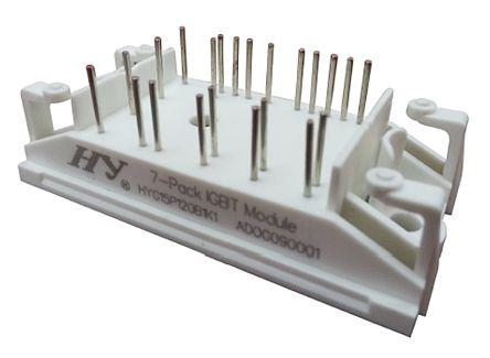 This is 3 Phase Bridge IGBT Module 20 A max 1200 V Through Hole manufactured by HY Electronic Corp. The manufacturer part number is HYG15P120B1K1. The product is available in 3 phase bridge configuration. The given dimensions of the product include 66 x 32.5 x 17.5mm. The product is available in through hole configuration. Provides up to 156 w maximum power dissipation. The product has a maximum 20 a continuous collector current . Whereas features a 1200 v of collector emitter voltage (max). In addition, the height is 17.5mm. Furthermore, the product is 32.5mm wide. Its accurate length is 66mm. It offers a maximum ±20v gate emitter voltage . Whereas, the minimum operating temperature of the product is -40 °c. The product is available in [Cannel Type] channel. It has a maximum operating temperature of +125 °c. It contains 23 pins. The product offers 3 phase transistor configuration.