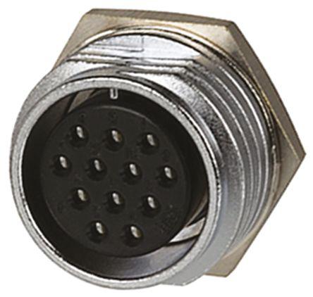 This is RM Series 12 Pole Panel Mount Miniature Connector Socket with Female Contacts manufactured by Hirose. The manufacturer part number is RM15TRD-12S(71). The product has a current rating of 5a. It is a type of screw on mating. The product is available in panel mount configuration. Moreover, the product has a nominal 350 v ac voltage rating. The product rm, is a highly preferred choice for users. It has straight body orientation. It allows solder termination method. This female contact is widely suited for specific applications. The product also features robust brass, zinc alloy housing material. It comprises a socket. The connector has miniature size. The shell has 15 size. The product contains 12 contacts.