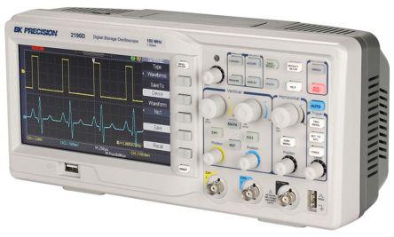 This is 2190 Series Digital Oscilloscope 2 Channels 100MHz manufactured by BK Precision. The manufacturer part number is BK2190D. Moreover, its maximum time base is 50s/div . Moreover, the product gets power from mains. Whereas, its minimum time base is 2.5ns/div . Furthermore, the product is 157mm wide. It includes a digital storage type oscilloscope . The given dimensions of the product include 323 x 157 x 136mm. It has standard yes USB interface . While it has bk2190d of model number. However, its sample rate random 250 m samples/s . It is supplied with 2 channels. Furthermore, it has a minimum 2mv/div vertical sensitivity . It has 16000m points/ch record length . It has a maximum operating temperature of +40°c. It screen is about 7in in size . It has an RS 232 interface yes . Moreover, its safety category level is cat i, cat ii . Its accurate length is 323mm. It has a maximum 10v/div vertical sensitivity . It features a remarkable colour display. The typical product's weight is 2.3kg. Its vertical resolution is approximately 8 bit . The product 2190, is a highly preferred choice for users. Its safety category voltage is 100 → 240 v ac, 400 v . It provides robust safety and is complied with 136mm safety category. Has 100mhz bandwidth. Whereas, the minimum operating temperature of the product is +10°c. Whereas, the rise time is cat i 400 v, cat ii 100 → 240 v ac .
