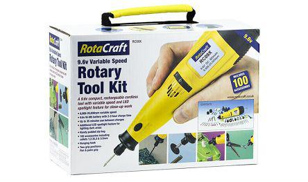 This is RC09X Variable Speed Rotary Tool Kit manufactured by Shesto. The manufacturer part number is RS_122-1167. The variable speed rotary tool kit is designed to provide robust applications in a variety of specific settings. This versatile kit contents include handy padded zip bag, hanging lock, led spot light, pen & palm grip, 1 mm collet, 2.35 mm collet, 3 mm collet, 3.2 mm collet, 100 accessories components. Moreover, the product has a nominal 9.6v voltage rating. It has a/an collet type chuck . It has a model number rc09x. It has a robust speed of 20000rpm.