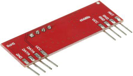 This is RF Receiver 433 MHz AM 2.5 → 5.5V manufactured by Quasar. The manufacturer part number is QAM-RX4-433. Moreover, it has 433 mhz supported frequency bands . It has about -106dbm receiver sensitivity . The given dimensions of the product include 12.5 x 44 x 5.12mm. It has a maximum operating temperature of +25°c. It has a/an receiver type module . In addition, the height is 5.12mm. It is created with am modulation technique . Furthermore, the product is 12.5mm wide. Its accurate length is 44mm. Features 2.5 → 5.5v supply voltage. It has a maximum 3000hz RF data rate .