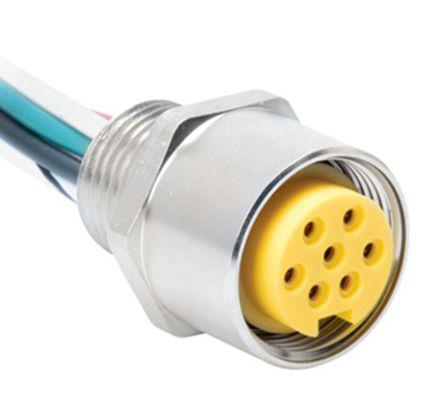 This is RKFV Series 6 Pole Panel Mount Connector Plug with Female Contacts IP68 manufactured by Turck. The manufacturer part number is RKFV 6B6-0.3M/14.75/NPT. The product has a current rating of 8a. It is a type of threaded mating. The product is available in panel mount configuration. It is IP rated with ip68. Whereas, the minimum operating temperature of the product is -30°c. The product rkfv, is a highly preferred choice for users. It has straight body orientation. Moreover, the product has a nominal 600 v voltage rating. This female contact is widely suited for specific applications. The product also features robust stainless steel housing material. It comprises a plug. The high-quality gold is used as contact plating material. It allows solder termination method. The product contains 6 contacts. It has a maximum operating temperature of +105°c. The product is made from sturdy brass materials.