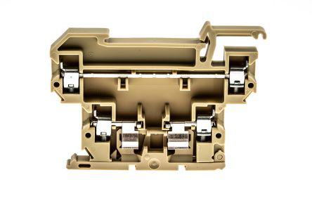 This is Fused DIN Rail Terminal KDKS Series 500 V 6.3A 5 x 20mm Fuse Brown Double manufactured by Weidmuller. The manufacturer part number is KDKS 1/35 -9503310000. It has ts35 rail type compatibility . The product carries double levels. The product has a current rating of 6.3a. Moreover, the product has a nominal 500 v voltage rating. The product kdks, is a highly preferred choice for users. It has a decent brown colour. A fuse with a 5 x 20mm size. It allows screw down termination method. Whereas, the minimum operating temperature of the product is -50°c. Moreover, the product is 8mm. Concerning wire's size, it is 26 → 12 awg. It has a maximum operating temperature of +100°c.