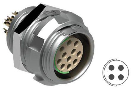 This is Core Series 102 4 Pole Panel Mount Circular Connector Receptacle IP50 Female Contacts manufactured by Fischer Connectors. The manufacturer part number is DG 102 A053-130. The product contains 4 contacts. The product has a current rating of 5.5a. It is a type of push-pull mating. The product is available in panel mount configuration. It is IP rated with ip50. Whereas, the minimum operating temperature of the product is -65°c. In addition, receptacle is the available "Gender" of the product. It has straight body orientation. Moreover, the product has a nominal 200 v ac voltage rating. This female contact is widely suited for specific applications. It allows solder termination method. The product also features robust brass housing material. The connector has standard size. The high-quality gold over nickel is used as contact plating material. The product core, is a highly preferred choice for users. The product is made from sturdy bronze materials. It has a maximum operating temperature of +200°c. It carries [Serial Number] serial number.