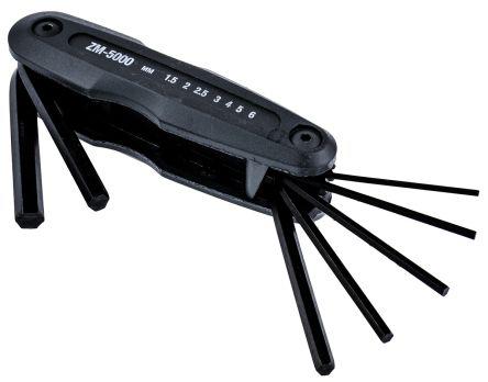 This is 7 piece Folding Hex Key Set Duracast R manufactured by Allen. The manufacturer part number is 56349. The product is made from highly stable and reliable duracast r. This is a type of z fold ups, a set with user-desired tools. It has an overall length of 3.5 in. Moreover, it has 1.5; 2; 2.5; 3; 4; 5; 6 mm set contents . The product consists of 7 pieces.