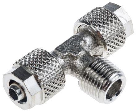 This is Pneumatic Tee Threaded-to-Tube Adapter 1/8in x 6mm x 6mm 15 bar manufactured by RS Pro. The manufacturer part number is 299-4216. It has a push in type tube connection A . The connector A is r 1/8 male connector. It contains a standard threaded connection of male gender . Furthermore, it has a threaded connection of r thread standard . Its connector is of r thread standard . Moreover, it has a push in type tube connection B . The product complies with all safety standards, such as rohs compliant. It features 15 bar maximum operating pressure. It has a standard 6mm tube size of tube connection B . Moreover, it has a standard tube size about 6mm of tube connection A . The product has a threaded-to-tube style. Its connector is of male gender . Additionally, the connector A is of 1/8in thread size . It has a maximum operating temperature of +70°c. The threaded connection is r 1/8 male. The product has a 1200 manufacturer series. It has a standard threaded connection of 1/8in thread size . It has a push in 6 mm tube connection B . Moreover, it has a standard push in 6 mm tube connection A . Whereas, the minimum operating temperature of the product is -18°c.