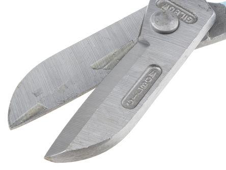This is 12 in Straight Tin Snip manufactured by RS Pro. The manufacturer part number is 400-6046. It has straight type of cut . Its typical cutting capacity is 18swg mild steel, 23swg stainless steel . It has an overall length of 12 in. In addition, it has a grounded edge blade finish .