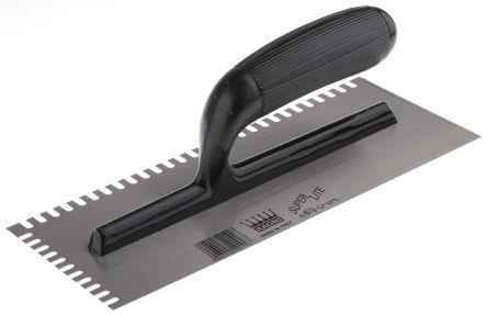 This is 11 x 4 3/4 in Carbon Steel ABS Mastic Trowel manufactured by RS Pro. The manufacturer part number is 707-4875. Furthermore, the product is 4.75in wide. Its accurate length is 11in. In addition, its blade is made up of carbon steel material . Its comfortable handle is manufactured from durable abs material. The blade has a 11 x 4 3/4 in size.